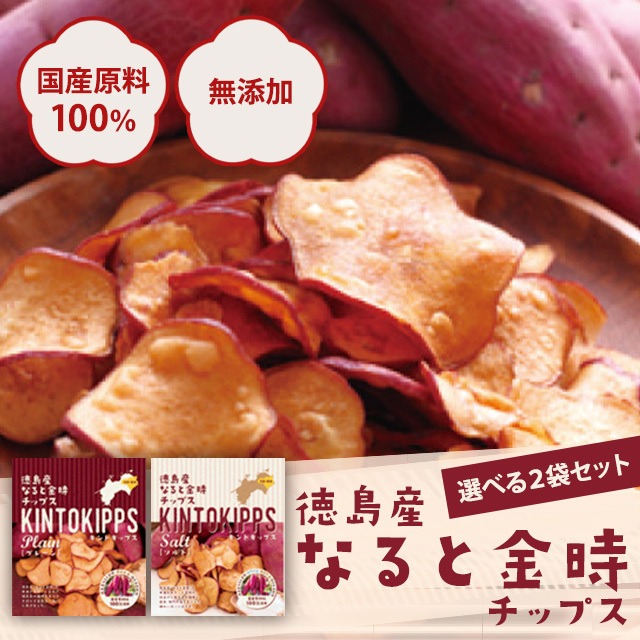 【蜂須賀】 徳島産なると金時チップス キントキップス (プレーン1袋 & ソルト1袋 計2袋セット)