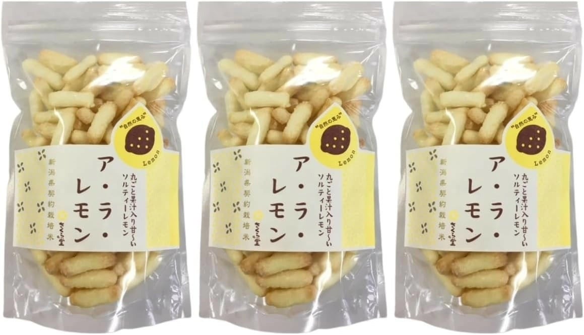 「自然の恵み ア・ラ・レモン 3袋セット」は、新潟県産のもち米にレモン果汁と皮を練り込んだ、爽やかな香りが広がるフルーツあられです。 香料・着色料・化学調味料を一切使わず、素材そのままのやさしい味わいに仕上げました。 ほんのりほろ苦いレモンの皮がアクセントになり、さっぱりとした後味で大人にも人気。 サクッと軽い食感と、自然な甘酸っぱさが楽しめるナチュラルスイーツです。 おやつやティータイム、ちょっとしたギフトにもおすすめ。体にやさしい無添加お菓子をぜひどうぞ。