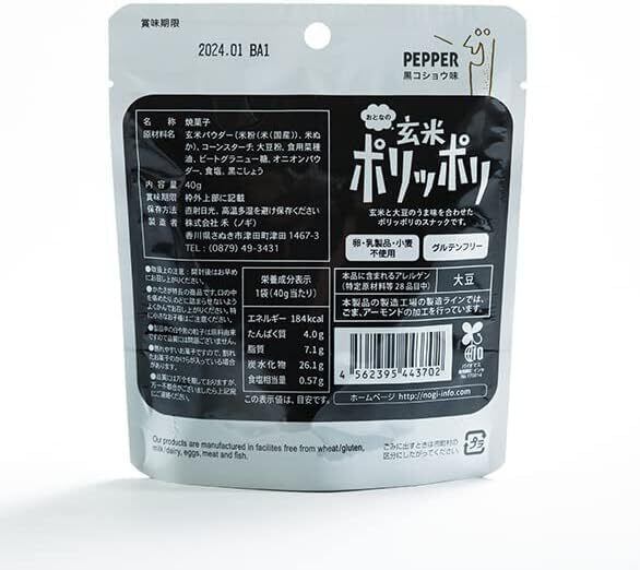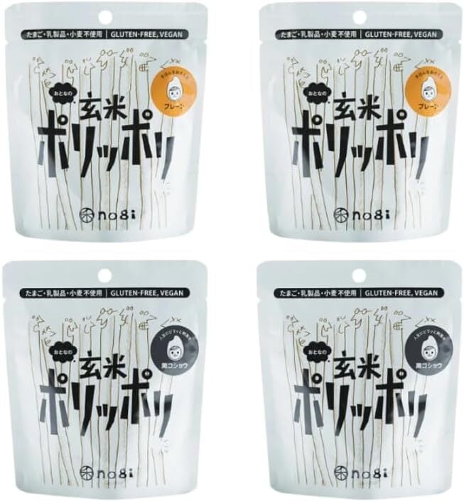 【禾】おとなの玄米ポリッポリ(4袋セット:プレーン、黒コショウ×各2袋)